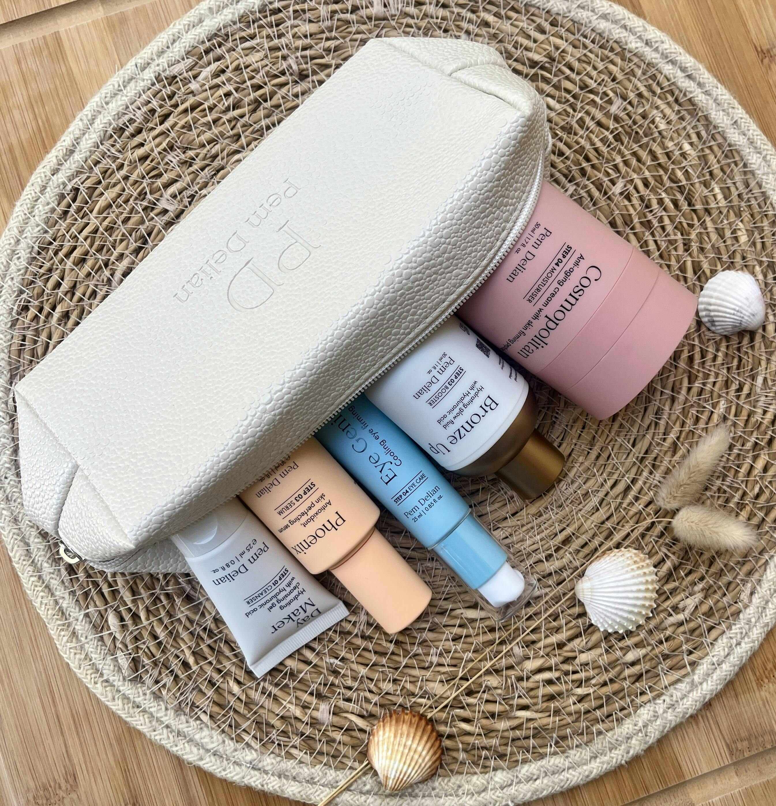 Pem Delian beige vegán bőr neszesszerben Day Maker arctisztító, So Simple olajos lemosó